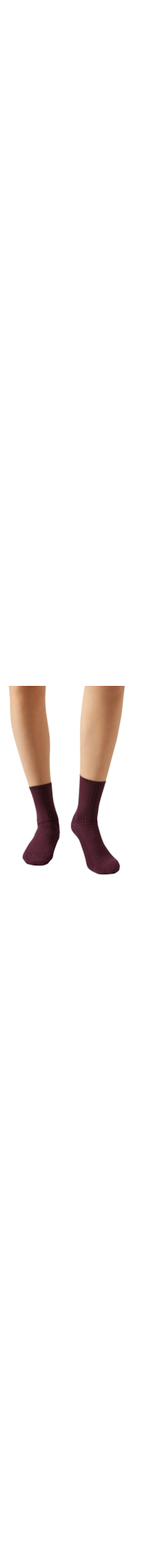 Meia Curta Em Algodão Canelado - Bordô