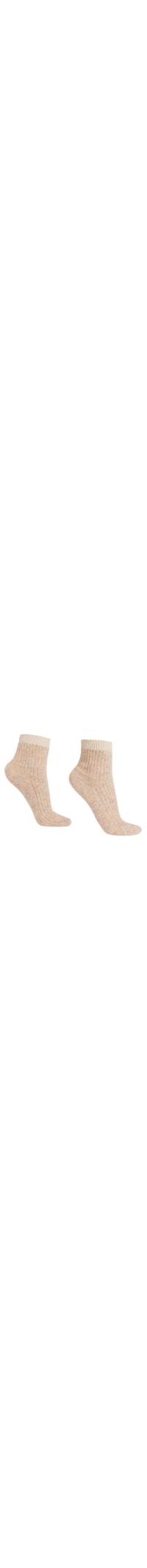 Meia curta feminina em lã quente e confortável, caracterizada por um padrão canelado e um fio brilhante.