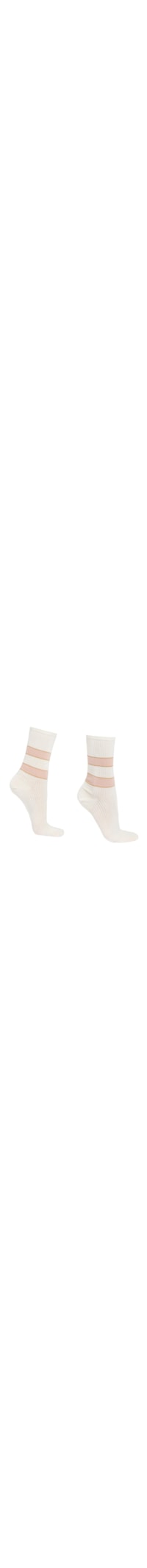 Meia curta feminina em algodão, caracterizada por um trabalho canelado e um padrão de listras adornado por um fio glitter.