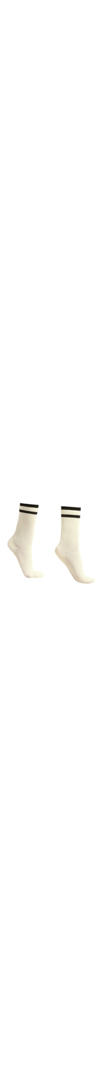 EsgotadoMeia curta feminina de estilo esportivo, confeccionada em algodão canelado com duas listras no punho.