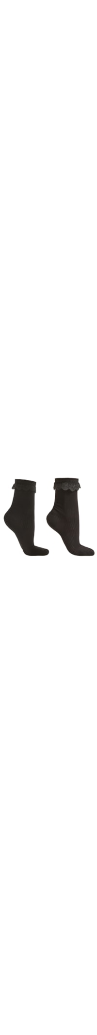 EsgotadoMeia curta feminina em algodão canelado, com delicada aplicação de babados de renda. Este detalhe adiciona um toque de elegância e feminilidade ao visual, perfeito para ocasiões especiais e para quem busca um acessório sofisticado.