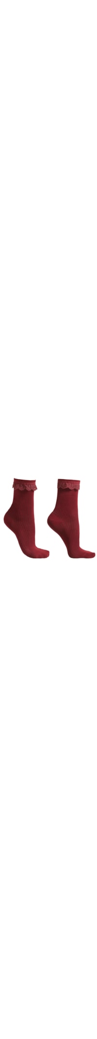 EsgotadoMeia curta feminina em algodão canelado, com delicada aplicação de babados de renda. Este detalhe adiciona um toque de elegância e feminilidade ao visual, perfeito para ocasiões especiais e para quem busca um acessório sofisticado.