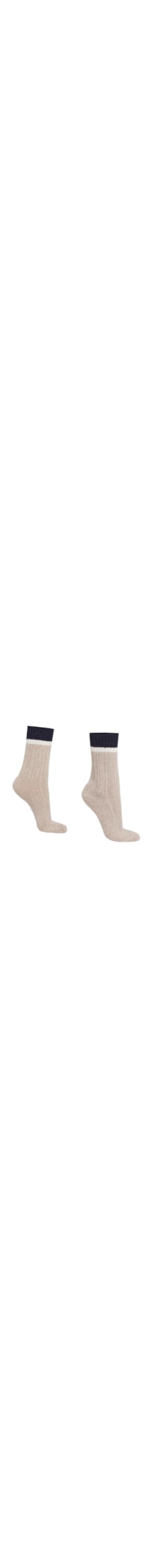 Meia curta feminina com cashmere macia e quente, caracterizada por um detalhe em cor contrastante na borda e um elegante tecido canelado.