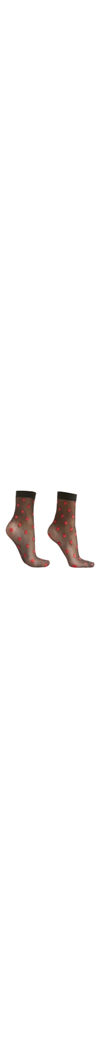 Meia curta transparente de fio 15, decorada com padrão de corações all-over em cor contrastante e orla lisa.