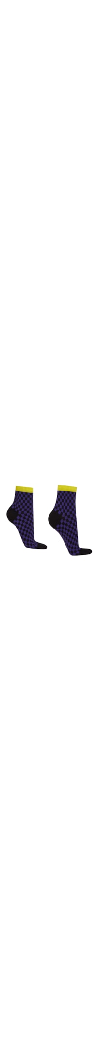 Meia curta feminina em algodão, caracterizada por um padrão geométrico em xadrez com borda canelada em cor contrastante.