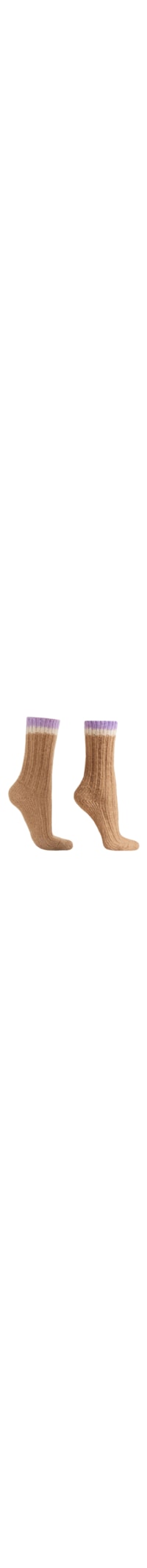 Meia curta feminina confeccionada em lã quente e grossa, com textura canelada e faixas no acabamento. Ideal para os meses frios, proporciona conforto e um toque de estilo.