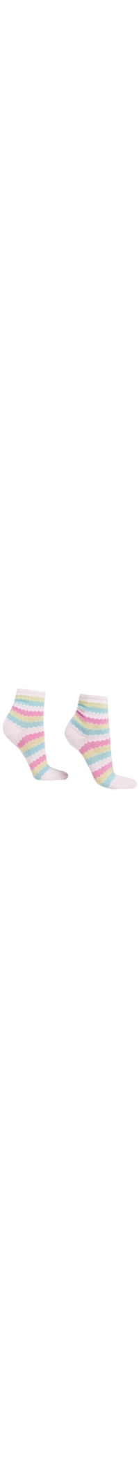Meia curta feminina, caraterizada por um acabamento trabalhado e um delicado padrão de listras irregulares.