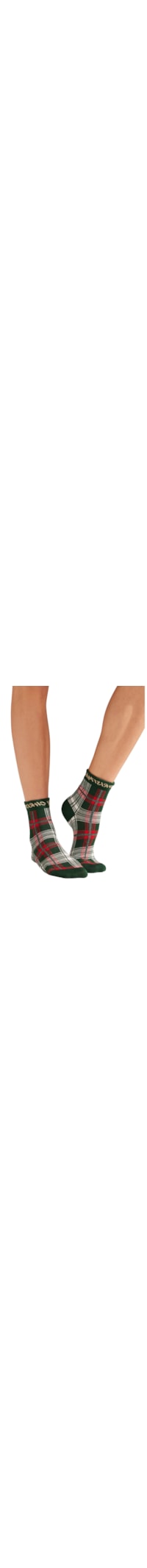 Meia curta feminina em algodão macio, com um padrão geométrico natalino, desenvolvida para a coleção cápsula Natal Family.