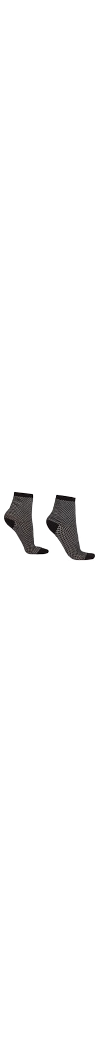 Meia curta feminina em algodão, destacando-se por um padrão de micro losangos e adornadas com um fio brilhante glitter.