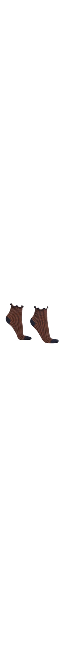 Meia curta feminina em algodão, apresentando um padrão geométrico em pied-de-poule com borda ondulada.