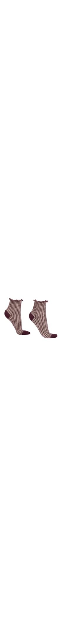 Meia curta feminina em algodão, apresentando um padrão geométrico em pied-de-poule com borda ondulada.