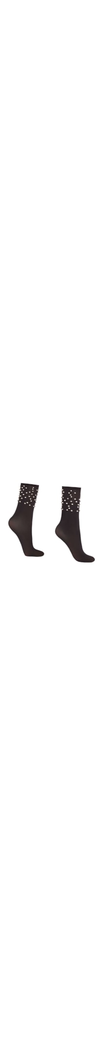 Meia curta opaca feminina, com aplicações de pérolas e strass. Rebordo confortável e liso.