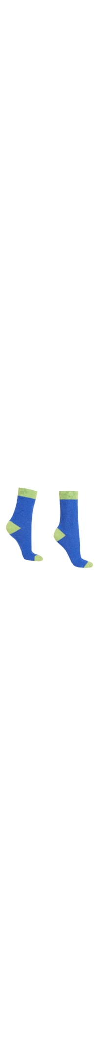 Meias curtas para mulher com caxemira macia e quente, caracterizadas por um trabalhado canelado e um jogo de cores vivas contrastantes.