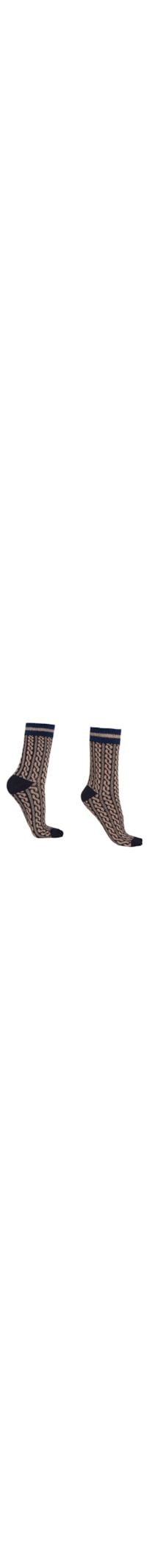 Meia curta feminina confeccionada em cashmere macio e glitter, caracterizada por um padrão geométrico e borda de cor contrastante com efeito aveludado.