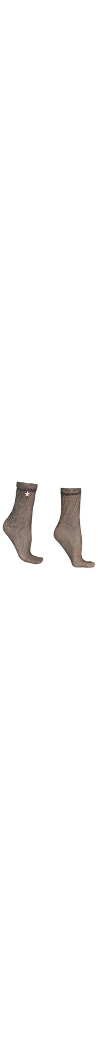 Meia Curta Transparente Franzida Com Glitter - Preto