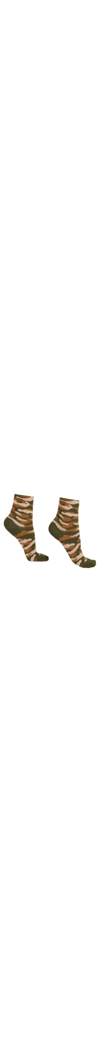 Meia curta feminina em algodão com estilo esportivo, com padrão camuflado.