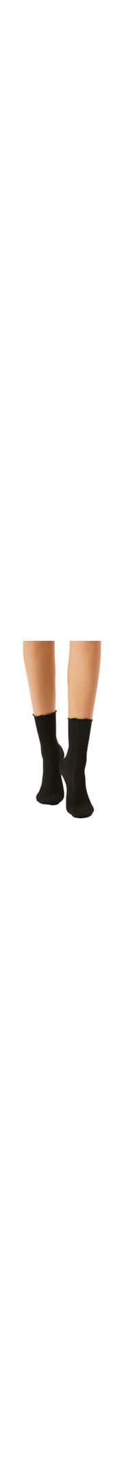 Meia curta em tecido com cashmere macio e algodão, que proporciona alto nível de conforto. O acabamento microcanelado acrescenta sofisticação e elasticidade, enquanto o rebordo romântico ondulado confere um toque único de feminilidade.