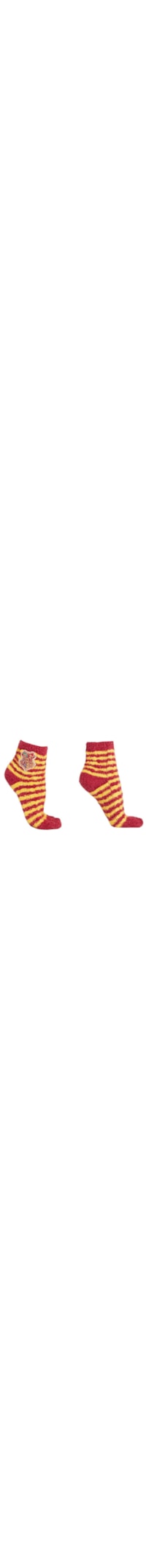 Meia curta feminina em tecido macio, quente e felpudo com um padrão de listras com brasão, criadas para a coleção cápsula especial Harry Potter.