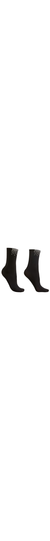 Meia curta opaca feminina com aplicações em strass preto, perfeita para adicionar um toque de glamour a qualquer look.