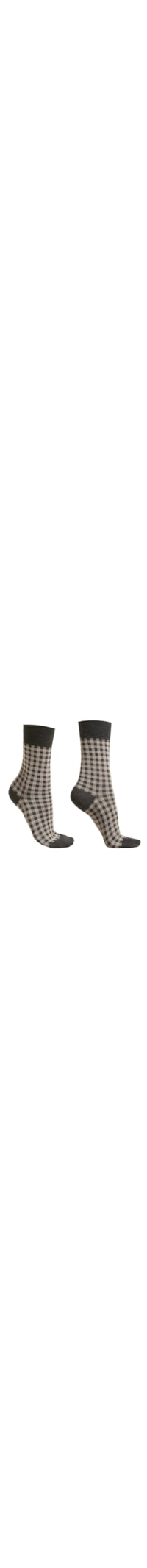 EsgotadoMeia curta feminina com estampa xadrez Vichy e punho alto, perfeita para adicionar um toque retrô e romântico ao dia a dia. Feita com fio macio e confortável, oferece ótimo ajuste e um estilo clássico que combina com qualquer ocasião.