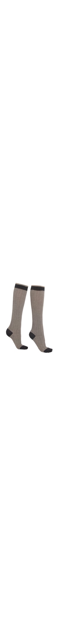 Meia longa feminina em algodão, caracterizada por um elegante padrão de espinha e borda em cor contrastante adornada por um fio glitter.