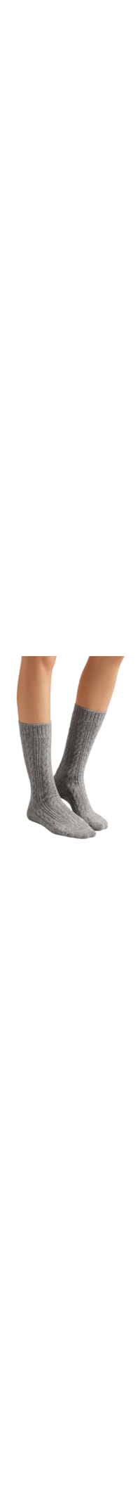 Meia curta com cashmere quente e encorpado, que oferece conforto térmico e muito estilo. O acabamento trançado adiciona um toque clássico e elegante, ideal para os dias mais frios.