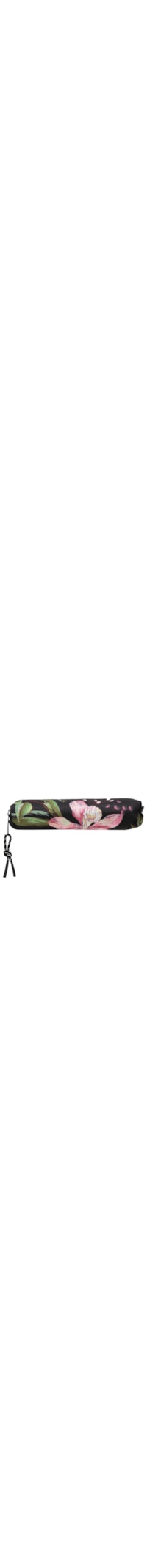 a necessaire Preta é Confeccionada Em lona. A Peça Possui Tamanho Pequeno, Formato Retangular, Tag Emborrachada Da Marca Aplicada Na Lateral, Estampa Figurativa De Flores Em Cores Contrastantes, Forro E Fechamento Superior Por Zíper Com Puxador De Cordão.