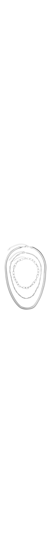O mix De Colares Prata é Produzido Em metal. A Peça menor Possui Espessura Média, Corrente Com Elos Finos, Extensor, Acabamento Polido E Fechamento Posterior Por Fecho Lagosta. A Peça média Possui Espessura Fina, Corrente Tripla Com Detalhes Esféricos, Extensor E Fechamento Posterior Por Fecho Lagosta. A Peça maior possui Tamanho Espessura Média, Acabamento Polido, Extensor E Fechamento Posterior Por Fecho Lagosta.