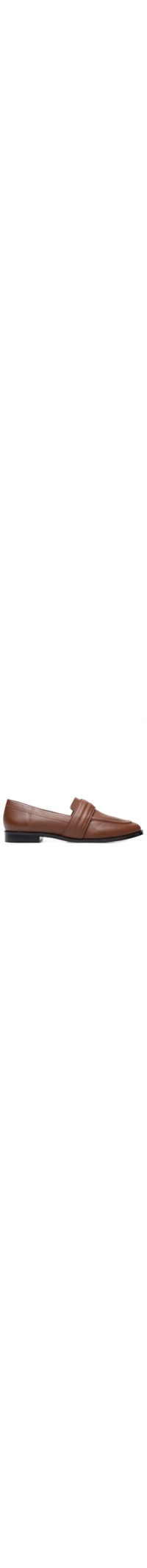 O mocassim marrom é produzido em couro. A peça possui bico arredondado, recortes frontais com relevo, tira larga superior com detalhes pespontados, recorte posterior, palmilha com nome da marca gravado, plataforma com salto baixo bloco.