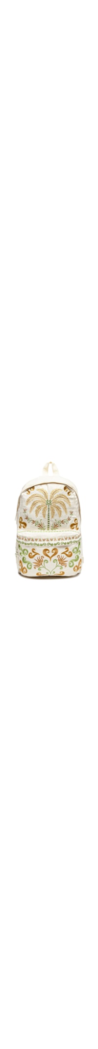A mochila off white é produzida em material têxtil. A peça possui tamanho grande, alças de ombro reguláveis, faixa de gorgurão com detalhe do nome da marca na alça de mão e nas alças de ombro, compartimento interno amplo com forro e bolso, mix de bordados frontais em cores contrastantes, tag da marca aplicada em borracha na parte lateral, bolso frontal com fechamento por zíper com puxador e fechamento por zíper com detalhe de assimetria.