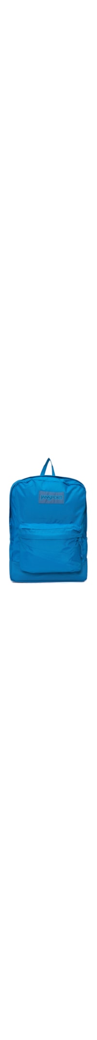 A mochila azul é produzida em lona. A peça possui alça de mão em gorgurão, alças de ombros acolchoadas com regulagem, bolso externo frontal, compartimento intero, tag da marca aplicada frontal e fechamento por zíper.