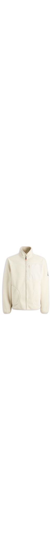 O moletom cinza é confeccionada em fleece com baixa elasticidade. A peça solta ao corpo possui gola alta, mangas longas, recortes frontais, bolso frontal aplicado na altura do tórax com fechamento por zíper, bolsos embutidos na parte frontal, recorte posterior, tag da marca aplicada na lateral da manga e na parte posterior, acabamento com elástico nas bordas e fechamento frontal por zíper.