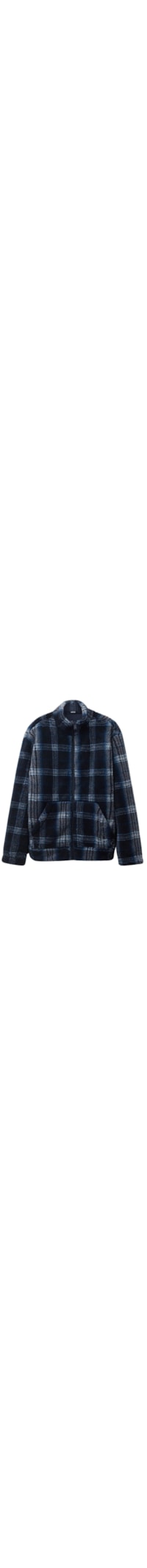 Moletom de manga longa com efeito peluciado e estampa xadrez em tons de azul-escuro e azul-claro. Possui forro interno em pelúcia macia para máximo conforto.