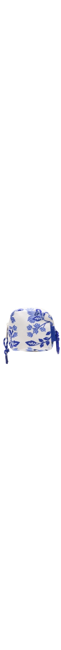 A nécessaireazul é produzida em lona. A peça possui tamanho pequeno, compartimento interno amplo com forro, recorte em gorgurão aplicado na lateral com gancho, tag aplicada em emborracha com nome da marca em relevo, estampa floral em cor contrastante e fechamento superior por zíper com puxador em cordão.