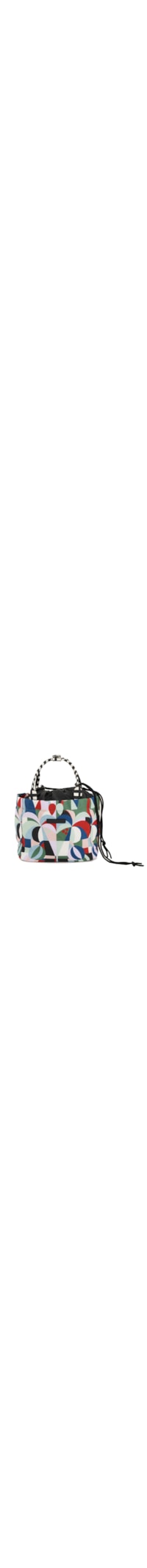 A necessaire preto é produzida em lona. A peça possui tamanho médio, compartimento interno, mix de estampas em cores contrastantes, alças de mão em gorgurão com nome da marca em baixo-relevo, tag da marca aplicada em borracha na parte frontal e fechamento superior por cordão regulável.