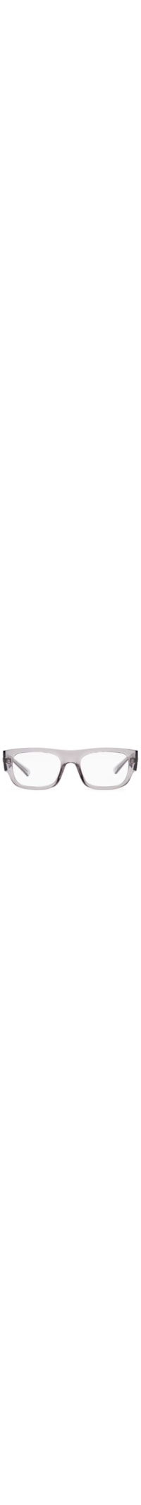 O óculos de grau cinza é produzido em acetato. A peça possui formato retangular, lentes com nome da marca em cor contrastante, ponte média, hastes médias com nome da marca aplicado em metal nas partes laterais e armação transparente.