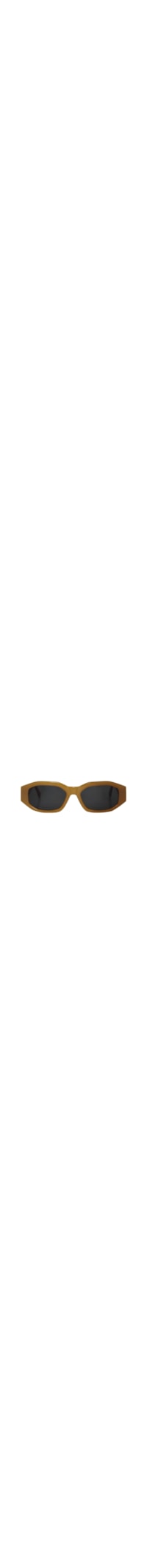 O óculos bege é produzido em acetato. A peça possui formato retangular, lentes pretas com proteção uva/uvb e hastes largas com o logo da marca timbrado na parte posterior e nome da marca aplicado em cor contrastante na parte interna. Acompanha case personalizada de proteção.