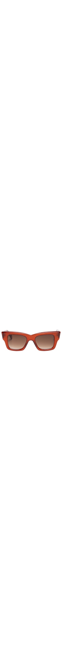 O óculos marrom é produzido em acetato. A peça possui formato quadrado, lentes escuras com proteção UVA/UVB e efeito degradê, hastes e ponte média.