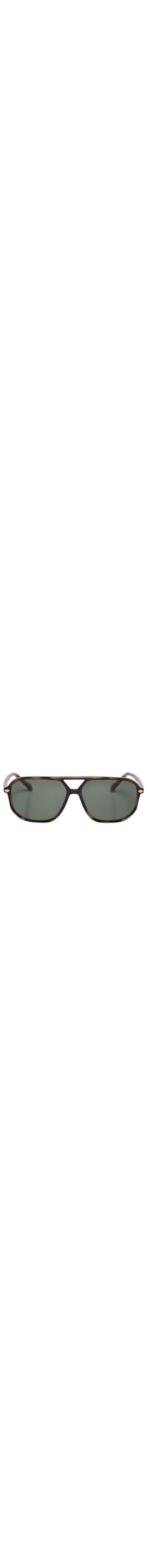 O óculos de sol marrom é produzido em acrílico com efeito tartaruga. A peça possui formato retangular, lentes escuras na cor verde com nome da marca aplicado em cor contrastante e com proteção contra os raios UV, ponte dupla com recorte vazado e hastes finas com detalhe do nome da marca aplicado em metal nas partes laterais.