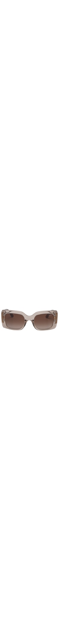 O óculos marrom é produzido por acetato. A peça possui formato retangular, tamanho S52, armação polida com alta transparência, hastes grossas com nome da marca em tom metalizado e detalhes em frisos, lentes com efeito degrade na cor marrom com proteção UVA/UVB e não polarizadas e encaixe com ajuste para ponte alta.