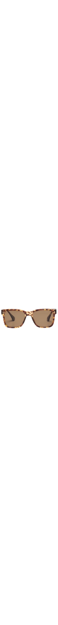 O óculos de sol marrom é produzido em acetato. A peça possui formato quadrado, lentes na cor marrom, ponte com formato anatômico, hastes largas e nome da marca aplicado e efeito tartaruga.