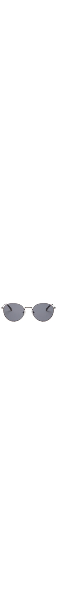 O óculos preto é produzido em metal. A peça possui formato redondo, lentes escuras, ponte fina, detalhe de plaquetas em silicone, hastes finas com aplicação de resina com superfície com efeito tartaruga.