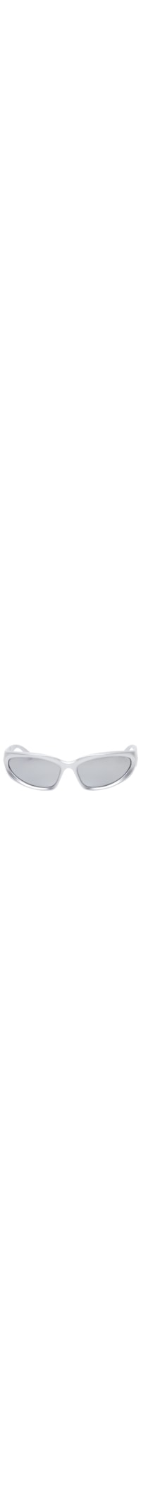 O óculos prata é produzido em acetato com superfície metalizada. A peça possui formato retangular, lentes escuras na cor preta e hastes médias com nome da marca gravado.