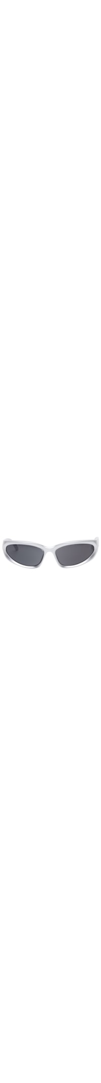 O óculos prata é produzido em acetato com superfície metalizada. A peça possui formato retangular com bordas arredondadas, lentes escuras na cor preta e hastes médias com nome da marca gravado.