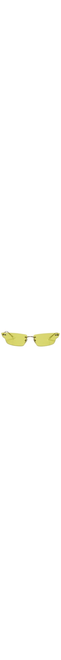 O óculos de sol verde é produzido em metal. A peça possui formato irregular, tamanho XL66, armação com acabamento polido, lentes transparentes na cor verde com proteção UVA/UVB, não polarizadas com alta proteção contra o brilho solar e nome da marca aplicado em cor contrastante, plaquetas ajustáveis para o nariz, ponte média e hastes finas com recorte em acetato transparente nas ponteiras.