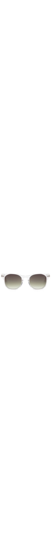 O óculos branco é produzido em acetato. A peça possui armação com transparência, formato redondo, lentes escuras na cor verde com efeito degradê e proteção UVA/UVB, ponte anatômica, nome da marca em leve relevo na lente, hastes médias com detalhes metalizados e acabamento polido.