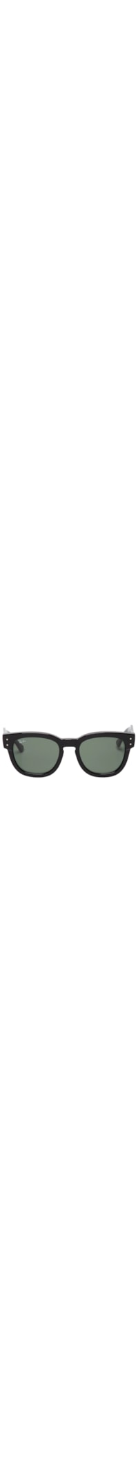 O óculos preto é produzido em acetato. A peça possui formato redondo, lentes verdes com proteção UVA/UVB e nome da marca aplicado na parte frontal em tom contrastante, círculos metalizados na parte frontal, recortes anatômicos, hastes médias com nome metalizado da marca aplicado em relevo e acabamento polido.