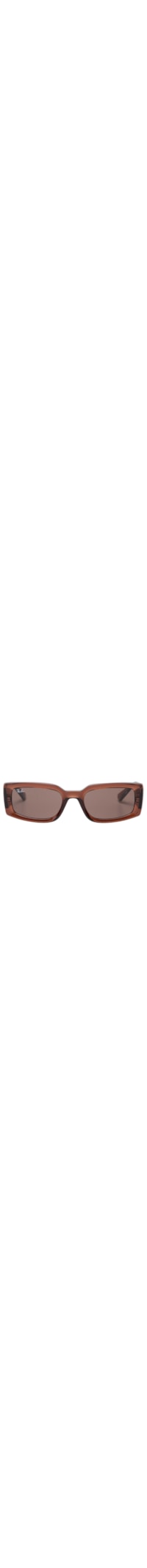 O óculos de sol marrom é produzido em acetato. A peça possui formato retangular com cantos arredondados, tamanho M54, armação transparente com acabamento polido, lentes na cor marrom escuro com proteção UVA/UVB, não polarizadas, com alta proteção contra o brilho solar e nome da marca aplicado em cor contrastante, ponte e hastes médias com nome metalizado da marca aplicado em relevo.