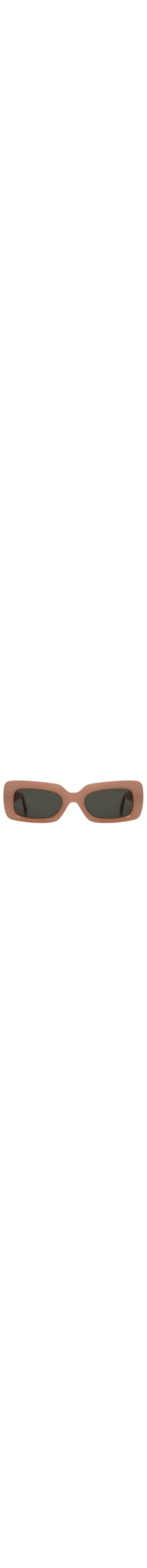O óculos bege é produzido em acetato. A peça possui formato retangular, lentes na cor verde escuro com proteção UVA/UVB, hastes grossas com nome da marca aplicado na parte interna e logo da marca na parte externa. Acompanha case e flanela personalizados.