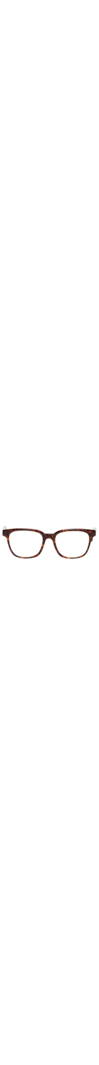 O óculos marrom é produzido em acetato. A peça possui fomato quadrado, ponte anatômica, lentes transparentes, efeito tartaruga e hastes médias com logo da marca aplicado em baixo relevo. Acompanha case de couro e flanela.
